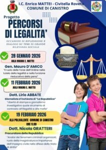 Ha preso il via oggi, 28 gennaio il progetto “Percorsi di legalità”, promosso dal Comune di Canistro in collaborazione con l’Istituto Comprensivo Mattei di Civitella Roveto.